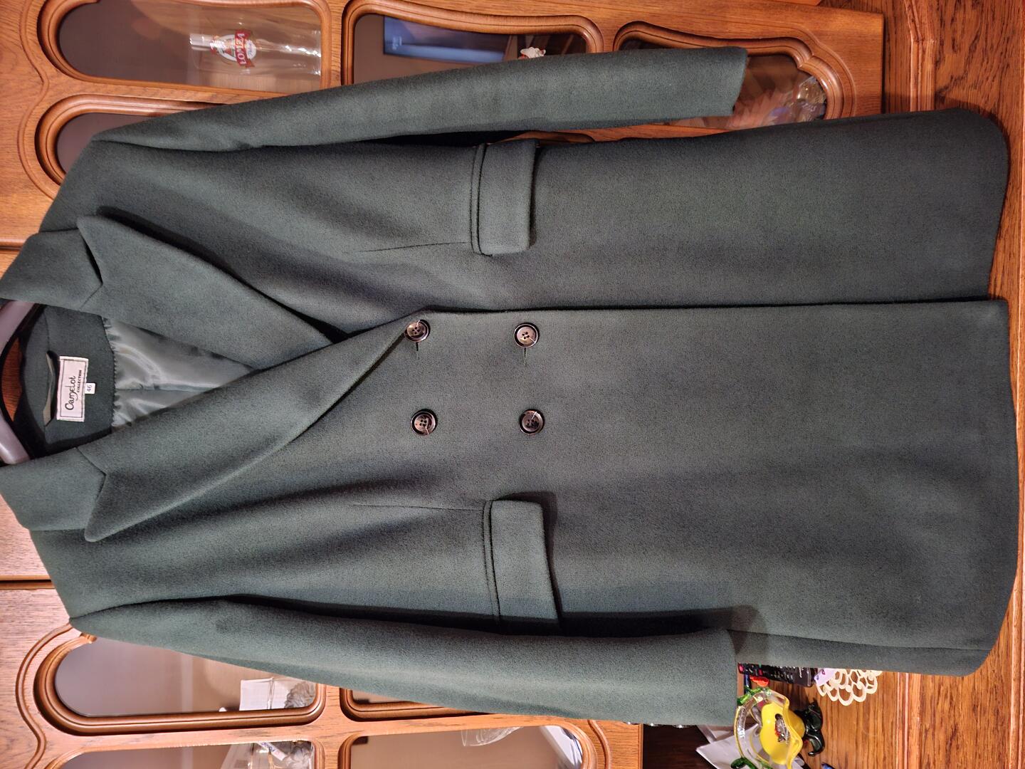 Sprzedam płaszcz damski, klasyczny krój w kolorze butelkowa zieleń (w rzeczywistości intensywny kolor), rozmiar z metki 46 ale bardziej na 44. Praktycznie raz założony, nitrafiony zakup.