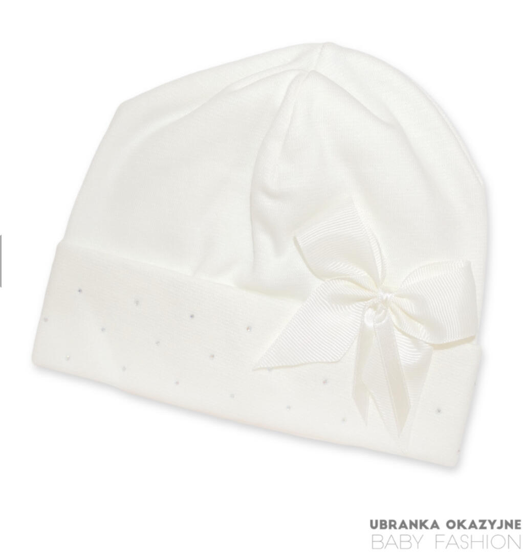 - Czapka Ecru z kokardką i cekinami firmy ubranka okazyjne rozmiar 38-40 cm