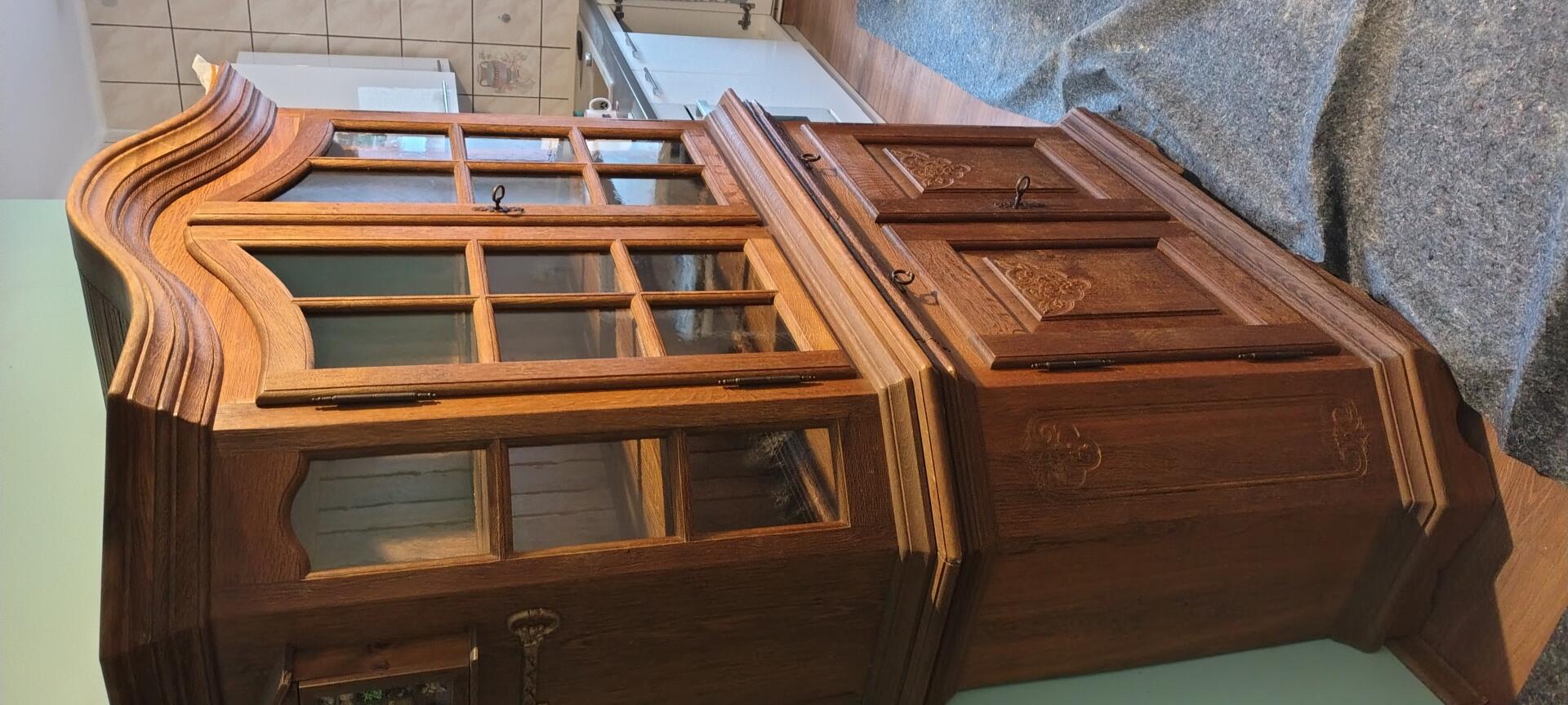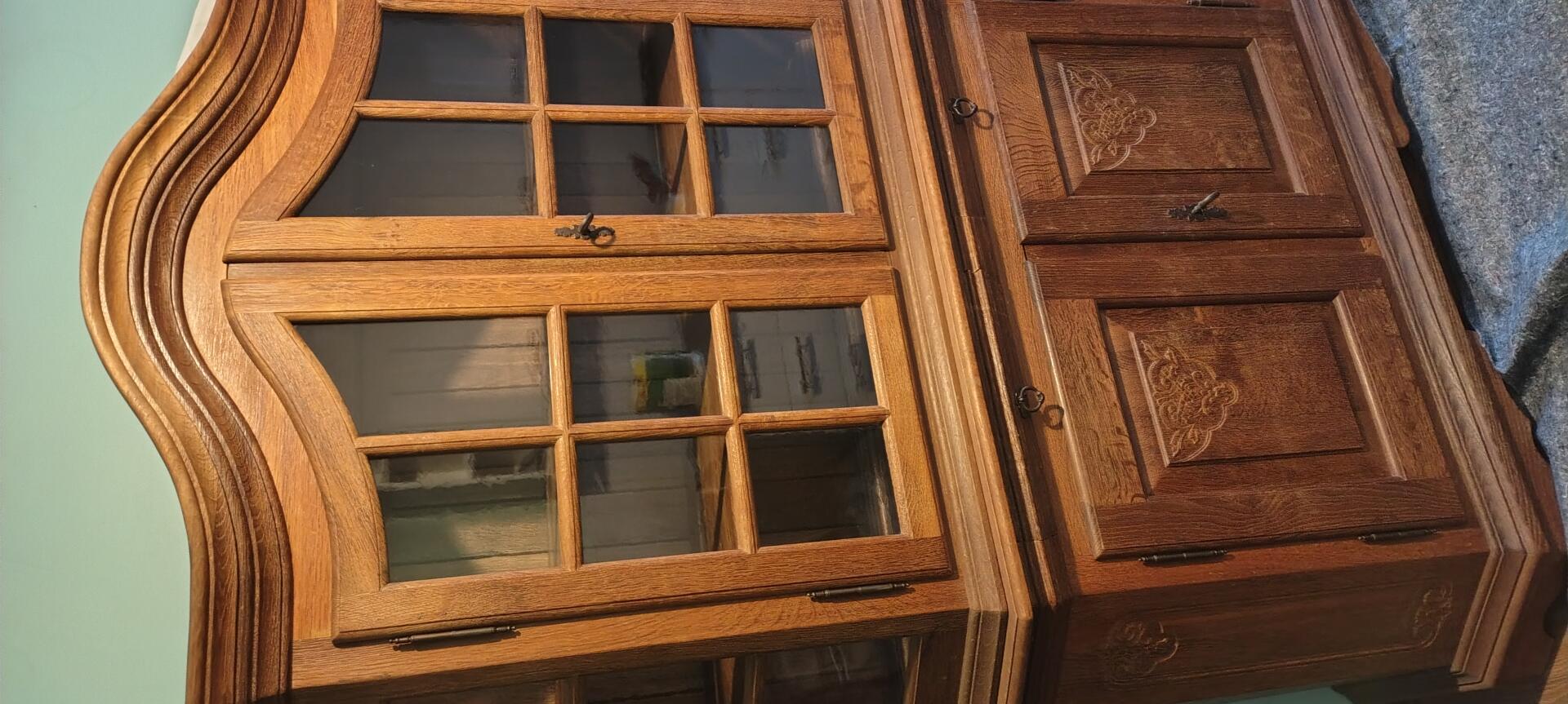 Sprzedam kredens dębowy. Wymiary szerokość 150cm wysokość 200cm. Odbiór we własnym zakresie. Cena do negocjacji
