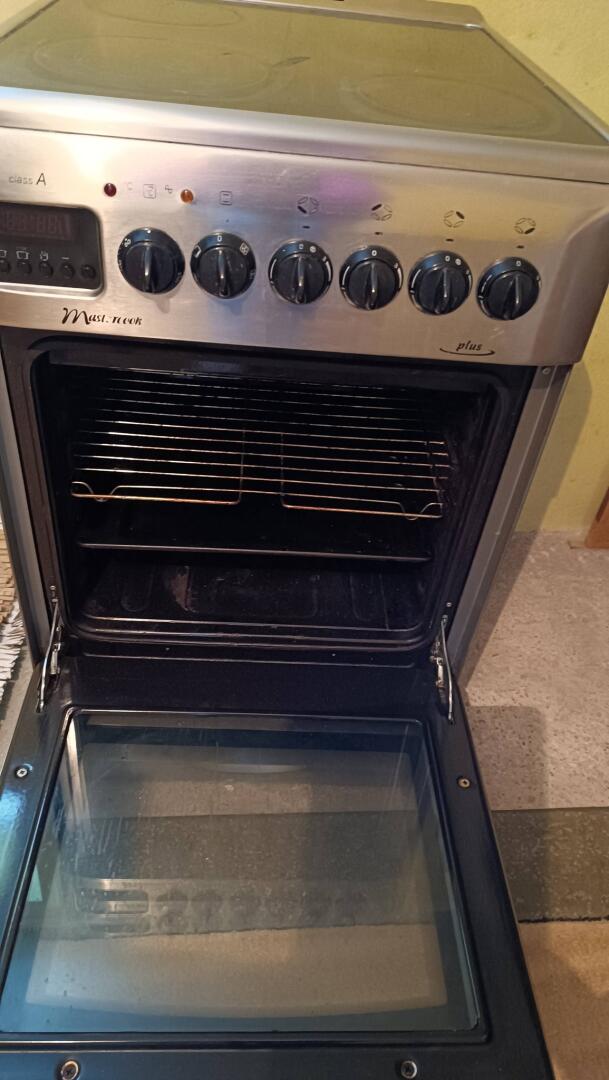 Sprzedam kuchenkę elektryczną czteropalnikową w kolorze inox/srebrnym. Urządzenie w pełni sprawne ? wszystkie pola grzewcze działają prawidłowo, piekarnik również działa bez zarzutu. Wymiary: 50 cm x 60 cm. Wyposażenie: 4 pola grzewcze (płyta elektryczna), sprawny piekarnik z szybą, pokrętła do regulacji temperatury. Stan widoczny na zdjęciach. Zasilanie: standardowe (kuchenka działa na prąd). U mnie była podłączona pod tzw. ?siłę?, czyli instalację trójfazową.