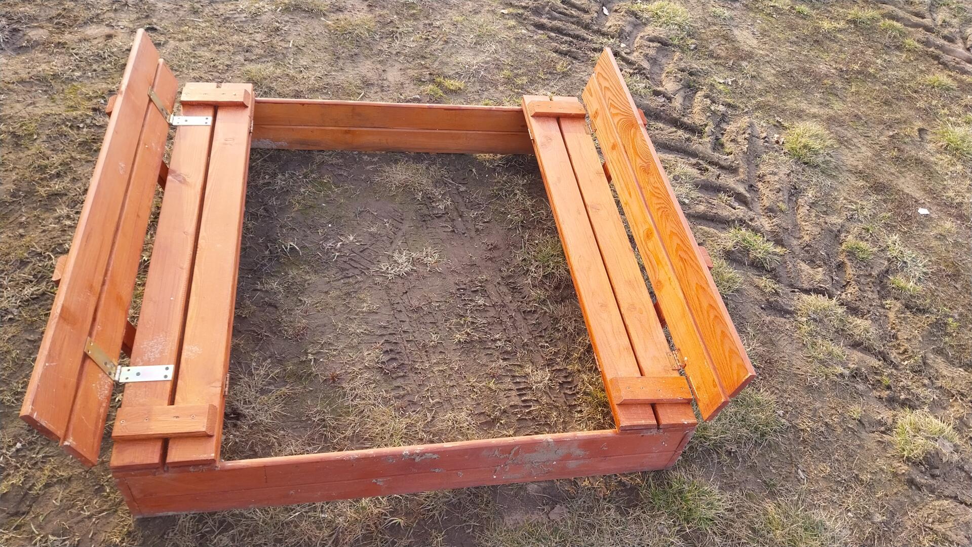 Sprzedam duża zamykana piaskownice 120x120 z ławeczkami.